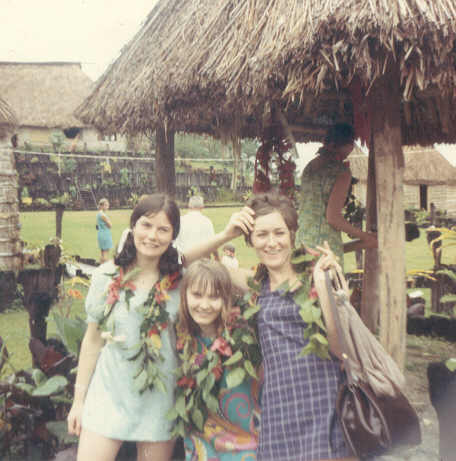 Once at the model village, all us girls noticed one handsome young fellow in a grass skirt, so when it was time to leave, Denise and I took the opportunity to stand beside him for a photo. “Wait till I send this photo home,” I told the others, “so Mum can see this gorgeous hunk I’m bringing home with me!”