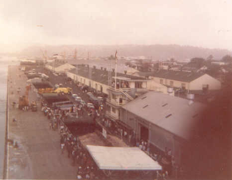 A Fijian band played on the dock as ships arrived and departed. Passenger David Thomas remembers them playing Glen Miller’s In The Mood. Not for us! They were playing the farewell song, Now Is the Hour, and for once we weren’t “in the mood” to cry as we normally did when we heard that song.