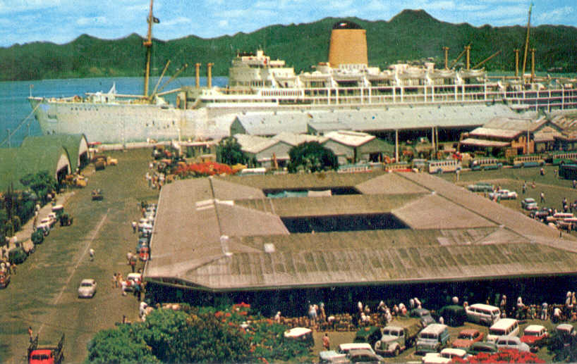 On returning to Suva, Denise and I decided to do some bargaining in the market, but not quite in the innovative way passenger Tim Roche chose to do so in 1977. He also got caught in one of Suva’s notorious sudden downpours and was running back to the ship to get out of the pelting rain.