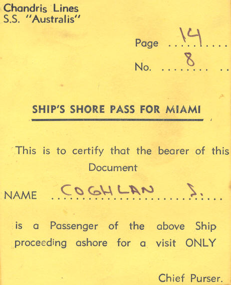 November 11, 1969: We docked in Port Everglades at 1.30am. What a crazy time to arrive anywhere!